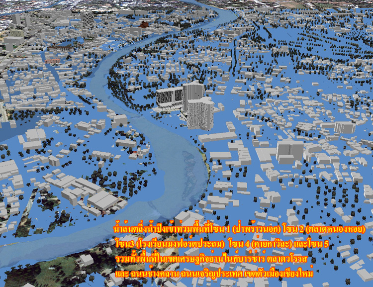 - แผนภาพจำลองบริเวณน้ำท่วม โดย คณะวิศวกรรมศาสตร์ ม.เชียงใหม่